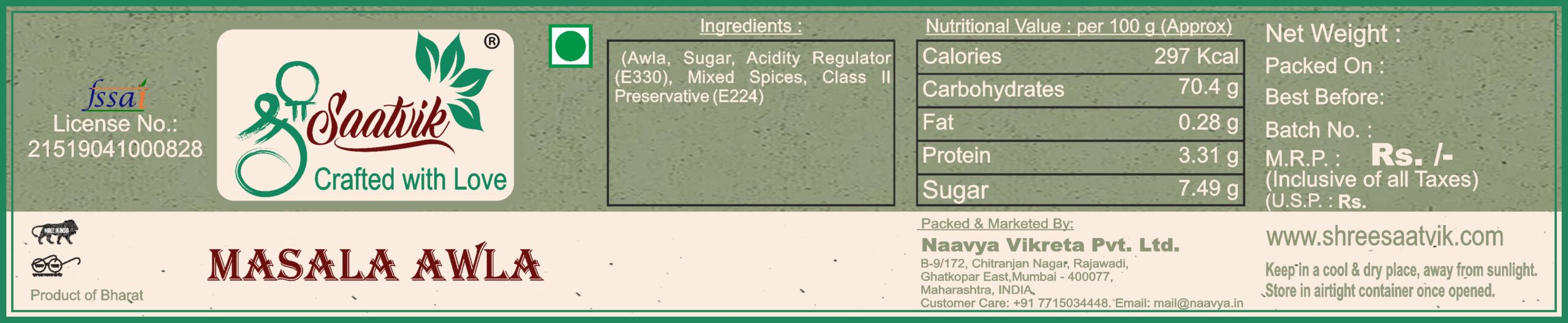 Masala Awla is a Blend of Indian Gooseberry and mixed spices. Also helps in absorption of various nutrients. Rich in Vitamins A and C.