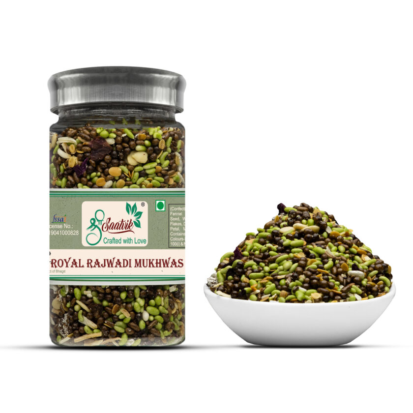 Royal Rajwadi Mukhwas is a Relishing mixture of Coriander seeds, watermelon seeds, coconut flakes, and rose petals. Watermelon seeds are good source protein, iron and zinc.