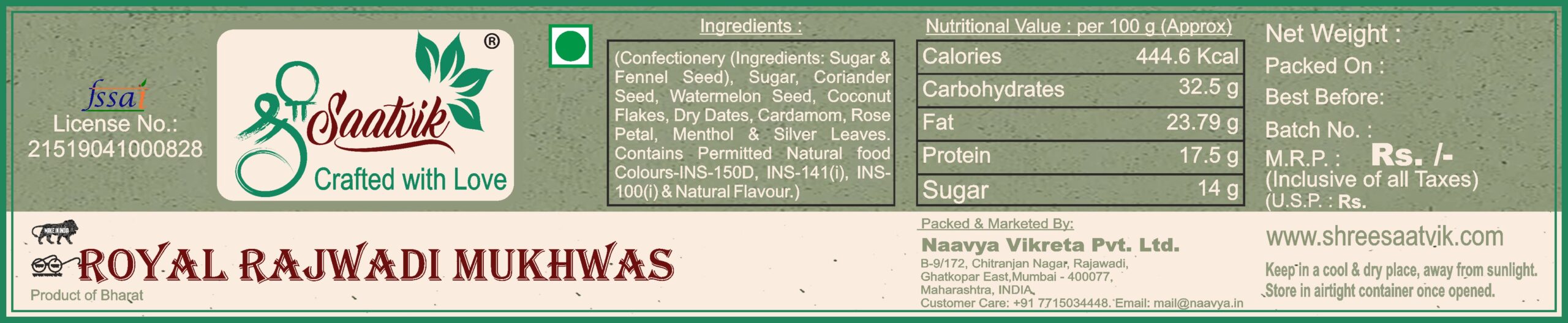 Blending in the rich flavors of India’s diverse culture from different parts of the nation, Shree Satvik offers to you the rich taste of royal quality mouth fresheners complimenting the ritual of serving sweet refreshing delicacies at the end of each meal.